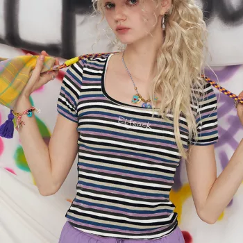 Chic Striped Short Sleeve Tee for Women – Casual Summer Style