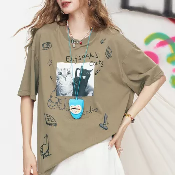 Pink Cat Graffiti Print Loose Fit Summer T-Shirt