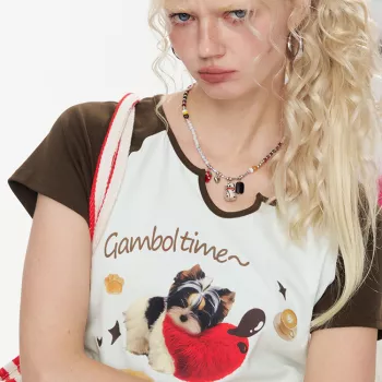 Summer Cartoon Print Chic Short Sleeve T-Shirt for Women – Knit Cotton Tee